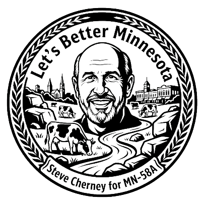 I promise that over the course of 2026, you'll get to know my work ethic, my fairness, and my openness to dialogue. I would like to serve as your State Representative in St. Paul. Please vote for me and please help me campaign for the majority of our community, from New Prague to Northfield. Click "Get Involved" below to create an online account we can use to communicate and get this job of Bettering Minnesota underway in St. Paul!